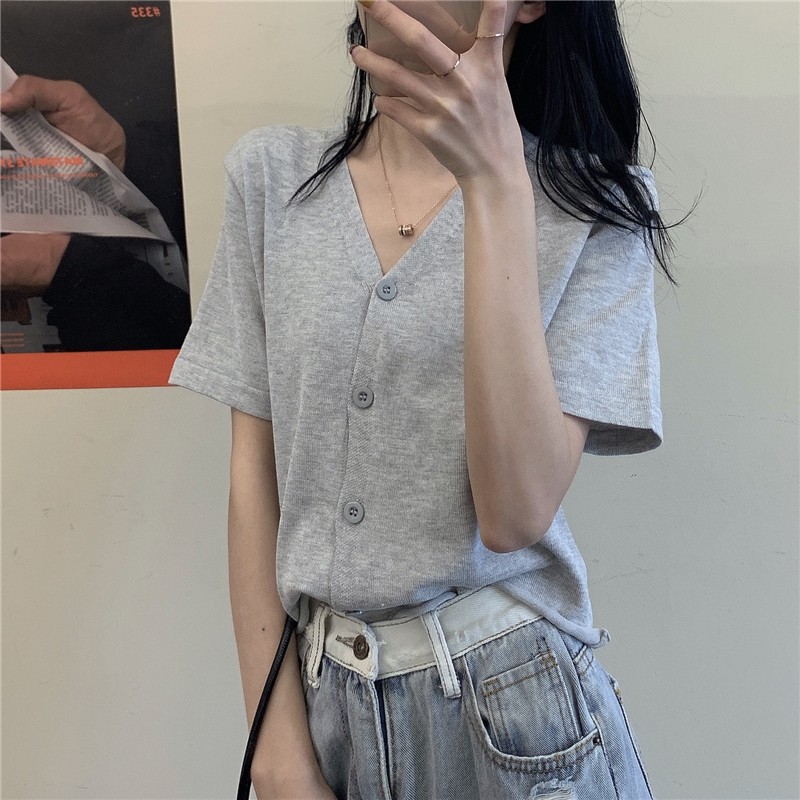 7分鐘前氣質v領薄款打底針織衫,2020夏季新款女裝短款開衫上衣 - 【買一送一】任選2件,僅需NT$998