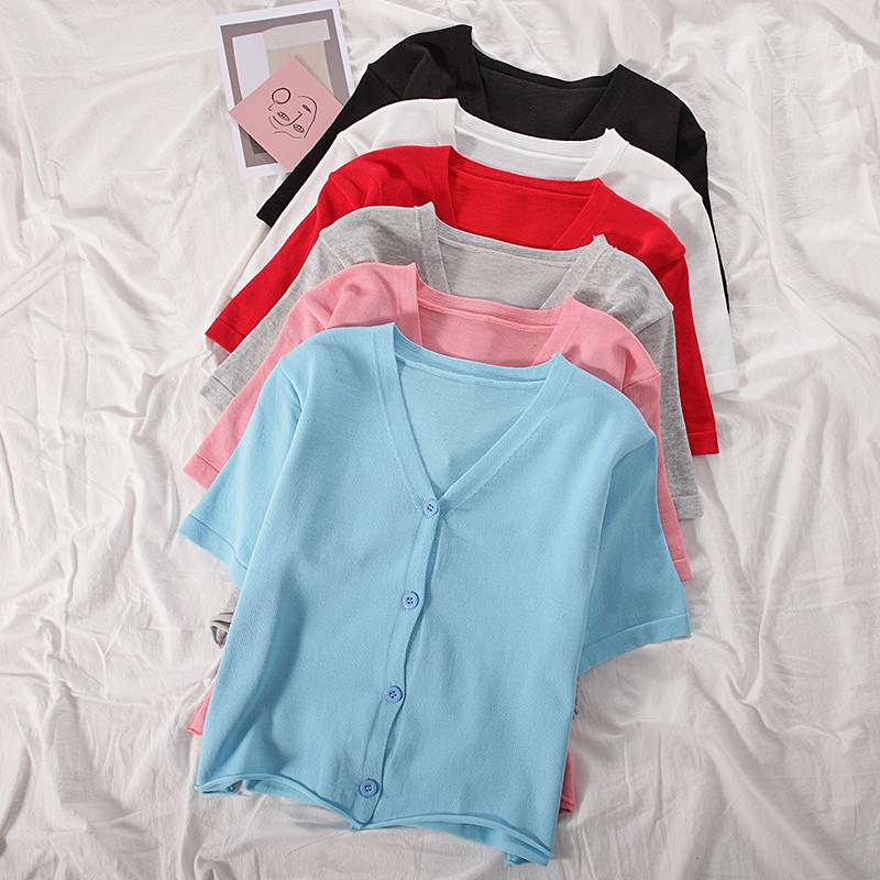 7分鐘前氣質v領薄款打底針織衫,2020夏季新款女裝短款開衫上衣 - 【買一送三】任選4件,僅需NT$1198