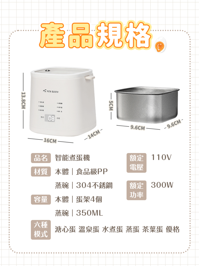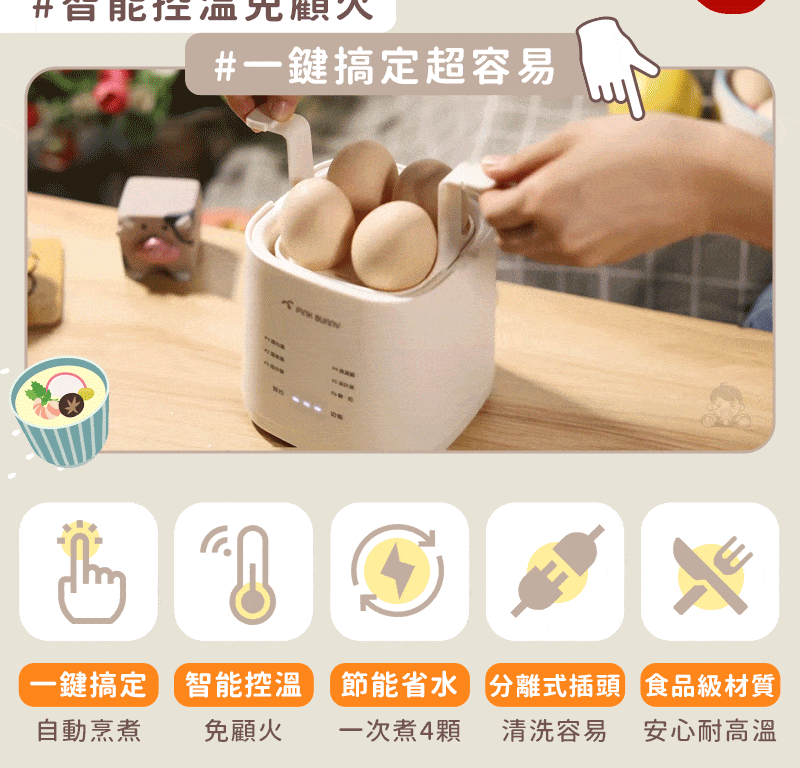 12分鐘前Pink Bunny智能煮蛋機智能控溫烹煮,營養美味輕鬆上桌 - Pink Bunny智能煮蛋機1入組 NT$1090
