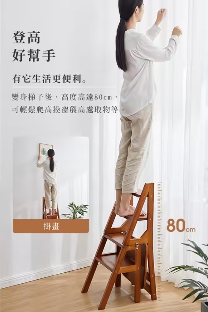 4分鐘前【現貨】二合一折疊梯子椅,木料製作,打磨精緻,可變為簡易小梯子,可幫助拿取高處物品 - 【四層|純實木|椅子秒變梯子】NT$2880