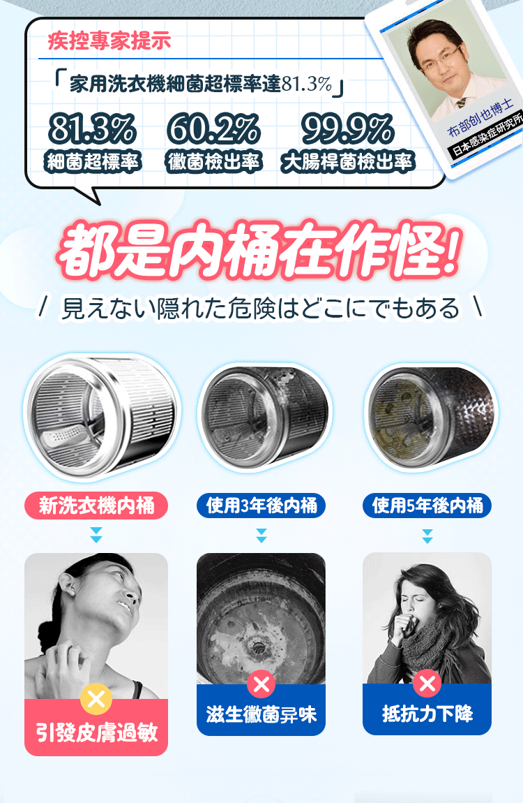2分鐘前還洗衣機一個清新 ,一鍵免浸泡 洗衣機抑菌清潔液 淡淡清香_你值得擁有 - 【超值特惠】5入組 NT$1190