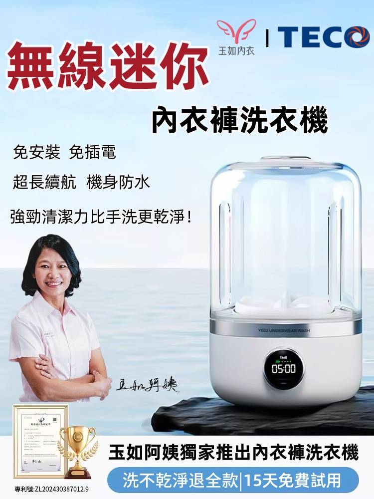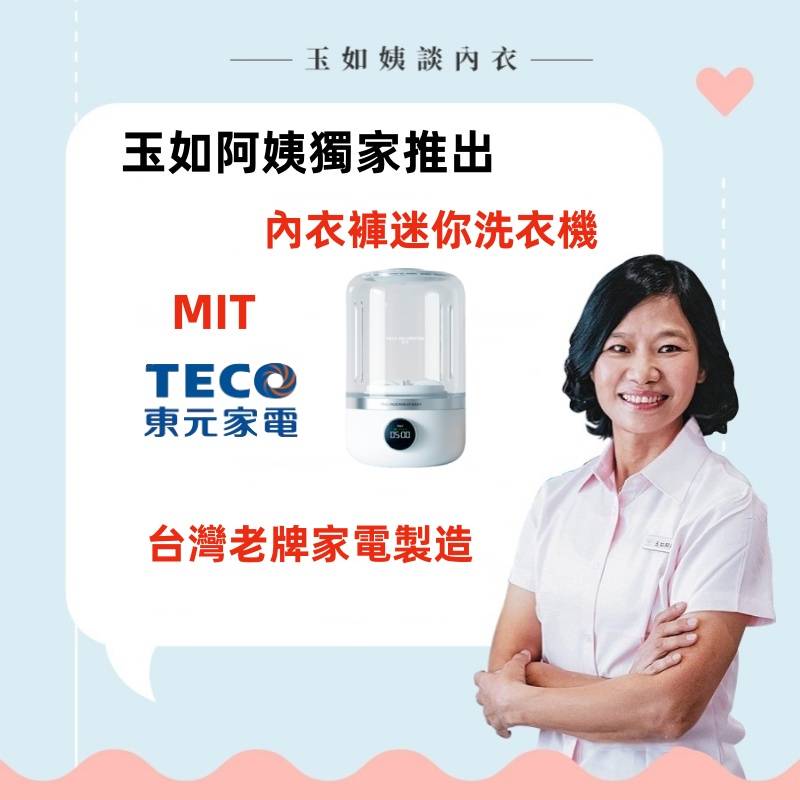 25分鐘前玉如阿姨獨家推出TECO迷你洗衣機,一鍵啟動解放雙手含銀離子持久抑菌,小巧機身功能齊全整機防水防潮防濕 - 內衣內褲分開洗 限時特惠 二入組NT$1990